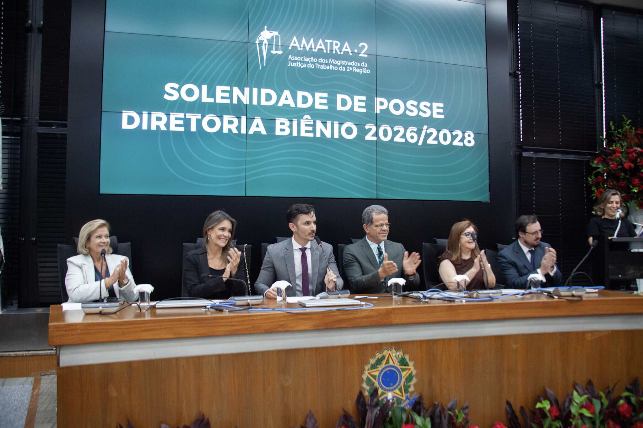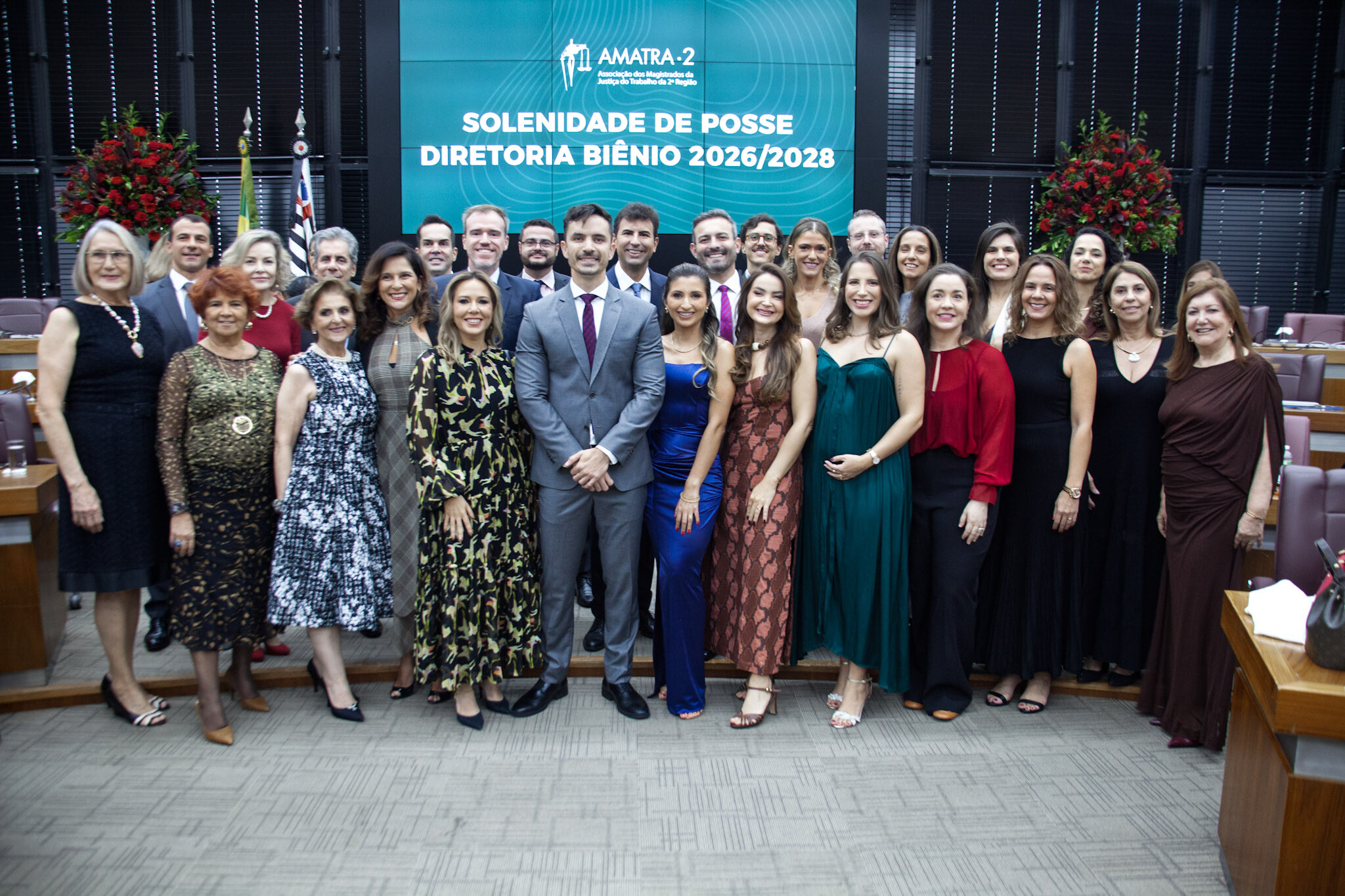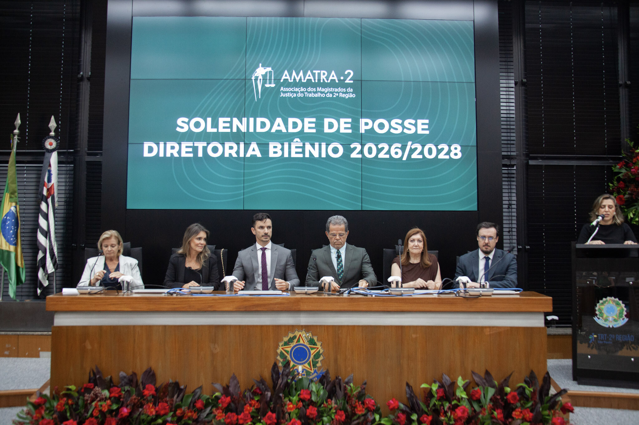 Na última quinta-feira (09/04), a AMATRA-2 realizou, no Edifício-Sede do Tribunal Regional do Trabalho da 2ª Região (TRT-2), a solenidade de posse da Diretoria, do Conselho Fiscal, da Comissão Disciplinar e de Prerrogativas, bem como das demais comissões eleitas para o biênio 2026/2028.