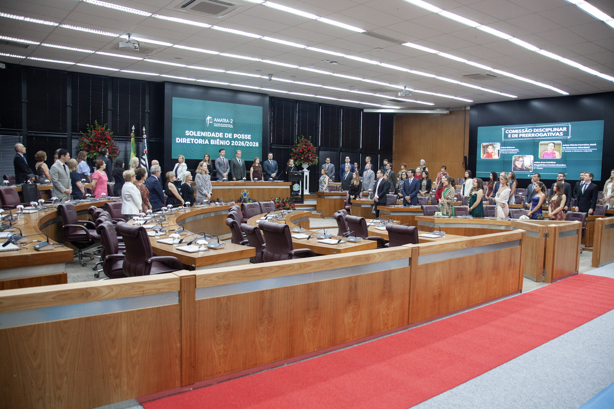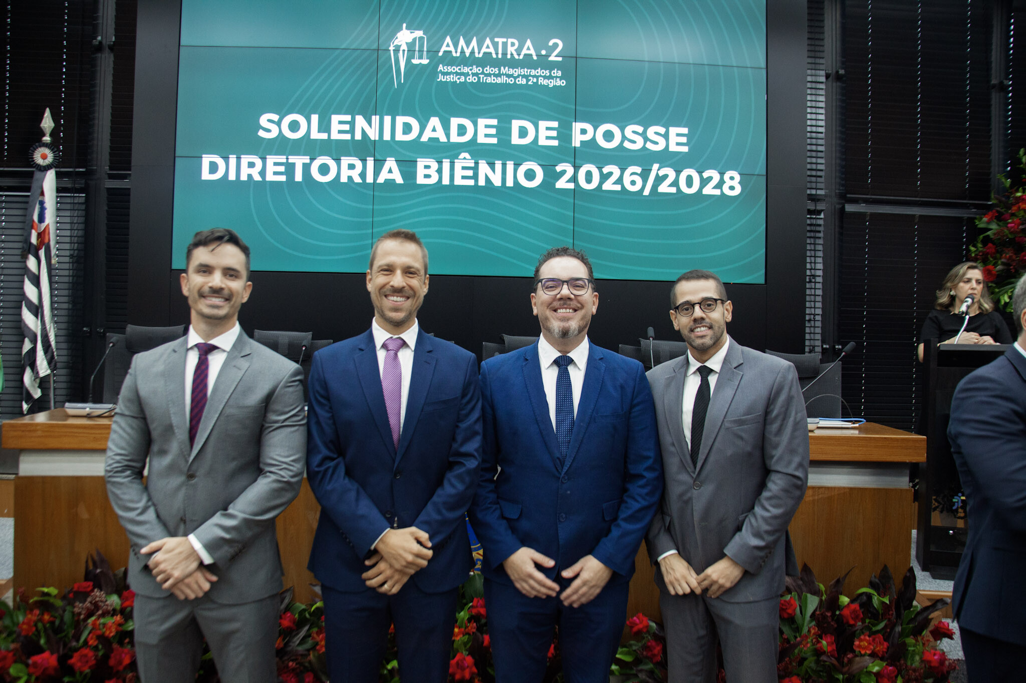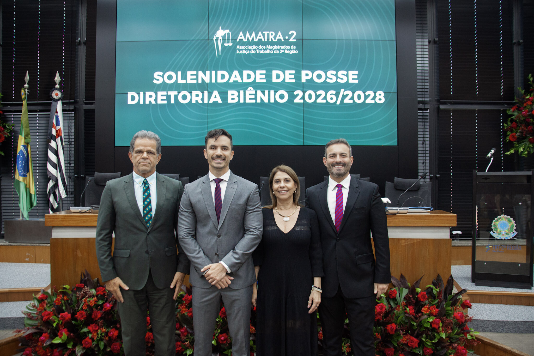 Na última quinta-feira (09/04), a AMATRA-2 realizou, no Edifício-Sede do Tribunal Regional do Trabalho da 2ª Região (TRT-2), a solenidade de posse da Diretoria, do Conselho Fiscal, da Comissão Disciplinar e de Prerrogativas, bem como das demais comissões eleitas para o biênio 2026/2028.